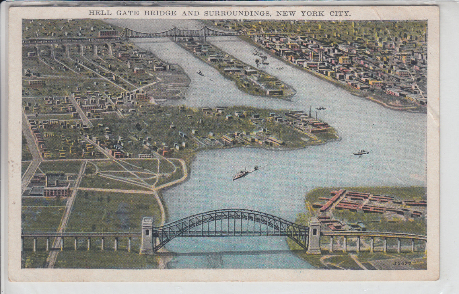 Title (ebay affiliate link): New York City New York NY Postcard 1930 Hell Gate Bridge and Surroundings