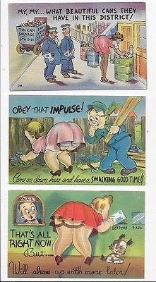 COMIC Girls Bend Over Junk Men Lot of 3 Linen Unposted Post Cards #1027