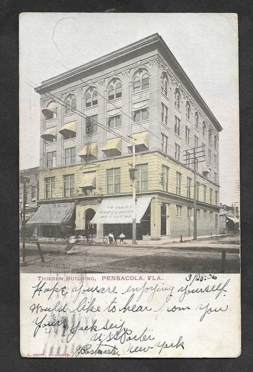 Title (ebay affiliate link): 1906 THIESEN Building PENSACOLA FL UDB Postcard Readable Signs 40 Palafox Place