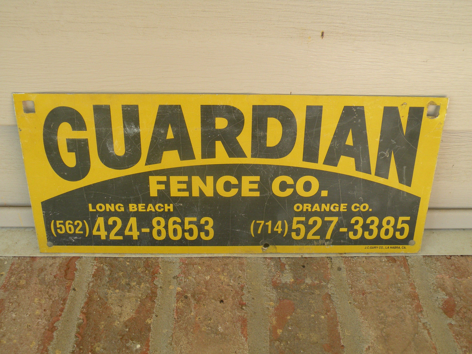 Vintage Guardian Fence Sign California Industrial Man Cave Garage Barn Farm