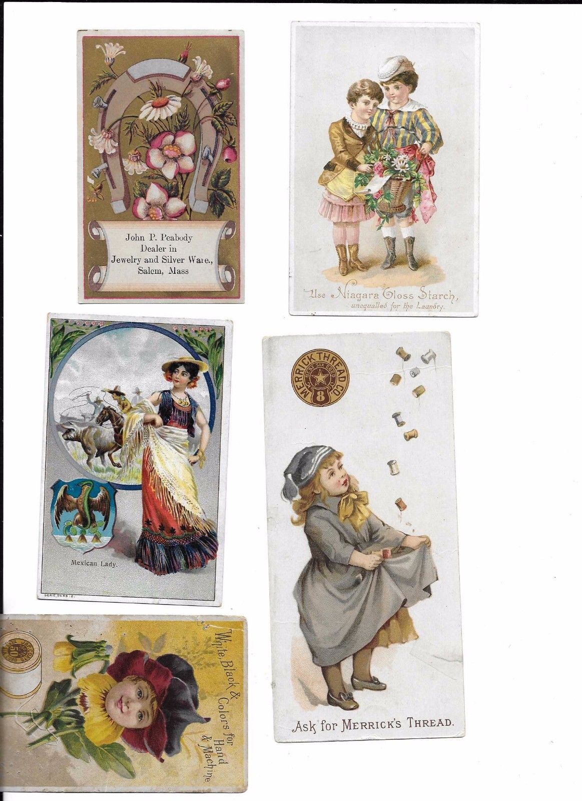 Victorian Trade Cards :Lot of 5 Threads, Starch, coffee, Sewing advertisements