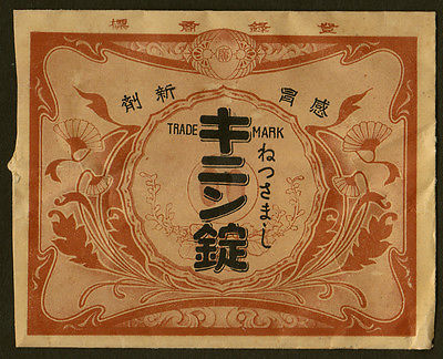 Old Japanese patent medicine envelope, ornamental flame, sealing paper, sticker.