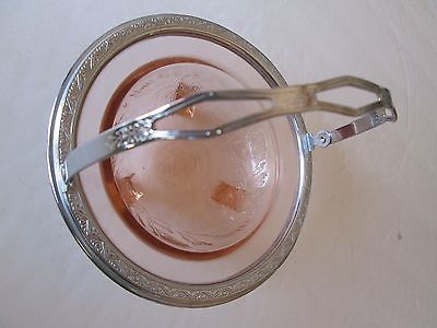 Pink Vaseline Depression Glass Fern Vine Metal Rim & Handled Candy Dish Footed