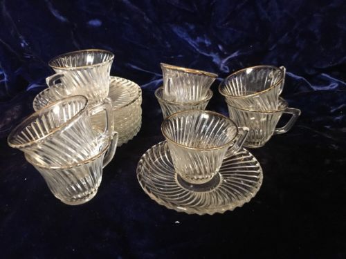 Title (ebay affiliate link): Federal Glassware Diana Swirl Gold Trim 8 Demitasse Cups with Saucers