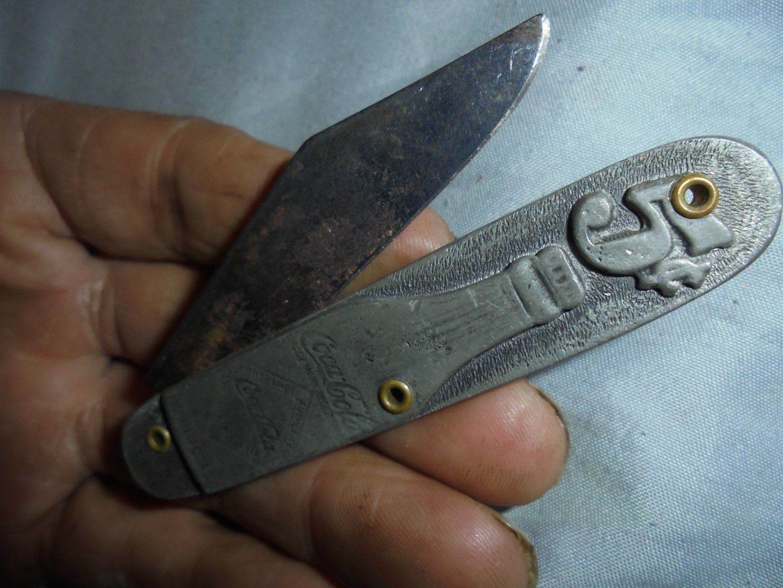 VINTAGE COCA COLA POCKET KNIFE ALL METAL BOTTLE HANDLE