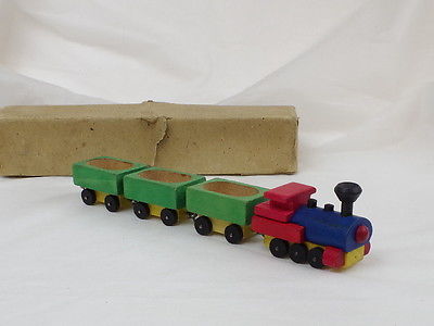 Title (ebay affiliate link): Vintage Wooden Toy Freight train with 3 wagons and a locomotive.Schowanek - TOFA