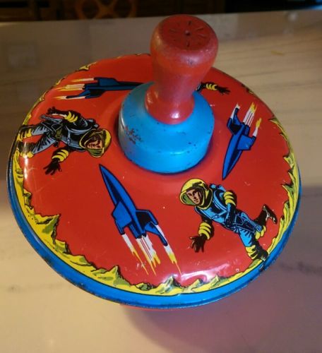 Title (ebay affiliate link): Vintage Pressed Steel Metal OHIO ART Toy Spinning Top SPACE Astronaut Rocket!