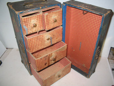 OLD EARLY 1900's MINIATURE 5 DRAWER STEAMER DOLL TRUNK