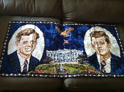 Title (ebay affiliate link): JFK & Robert Kennedy 38x19" Portrait Tapestry Wall Hanging Italy 1964 Lot 6