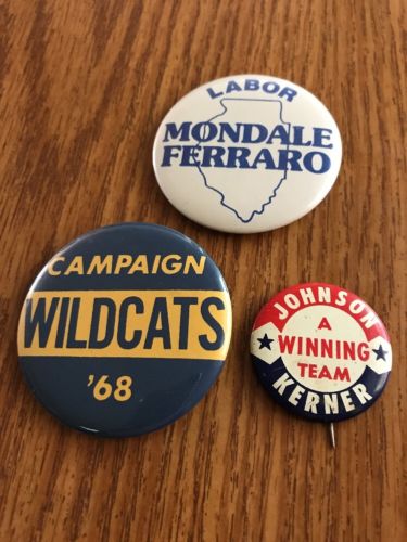 Title (ebay affiliate link): 3 VTG. Presidential Campaign Buttons WILDCATS 68 MONDALE FERRARO JOHNSON KERNER