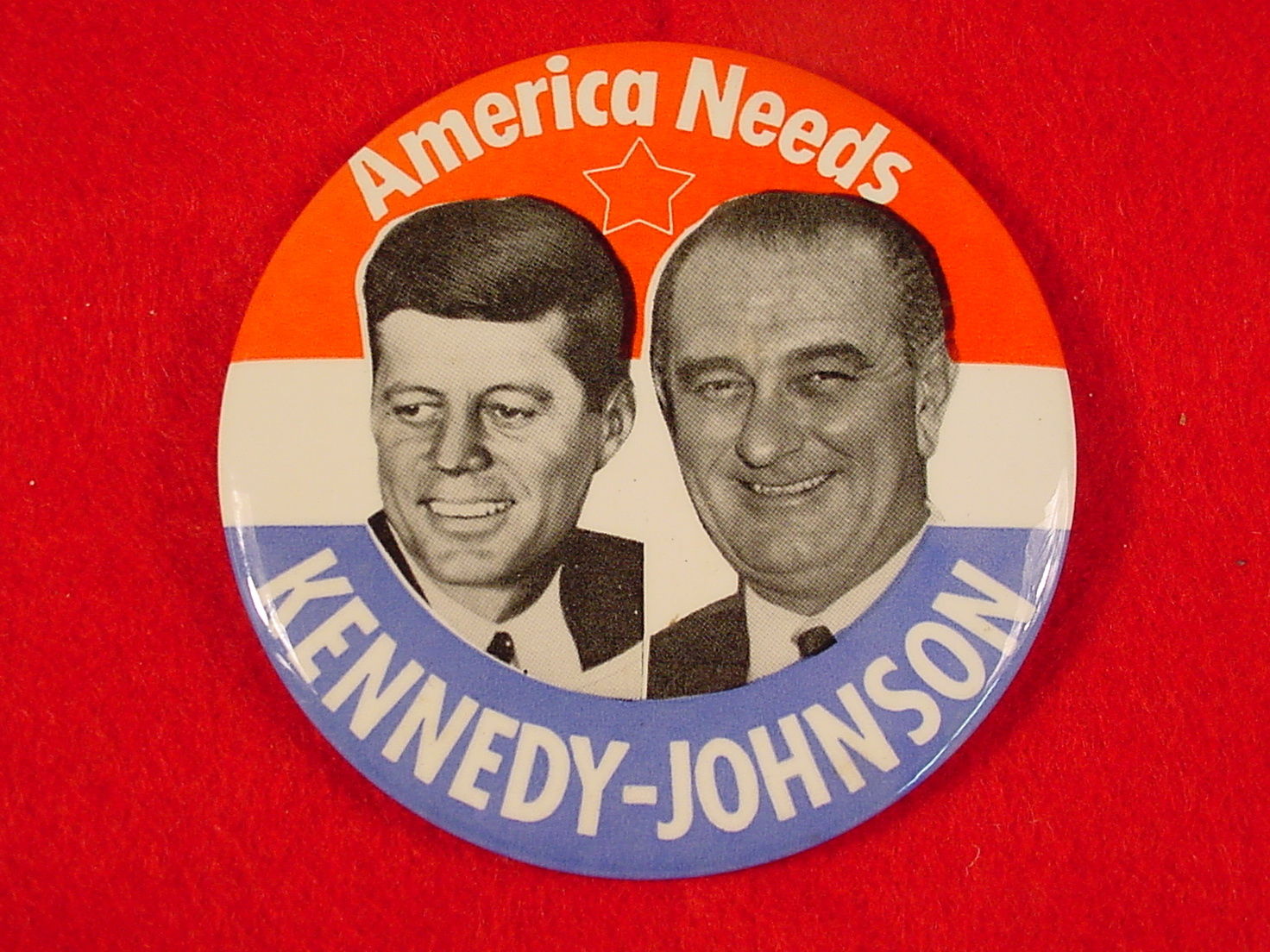 Vintage 1960''s Kennedy-Johnson Political 3 1/2" Button~"America Needs" Nov. 1960