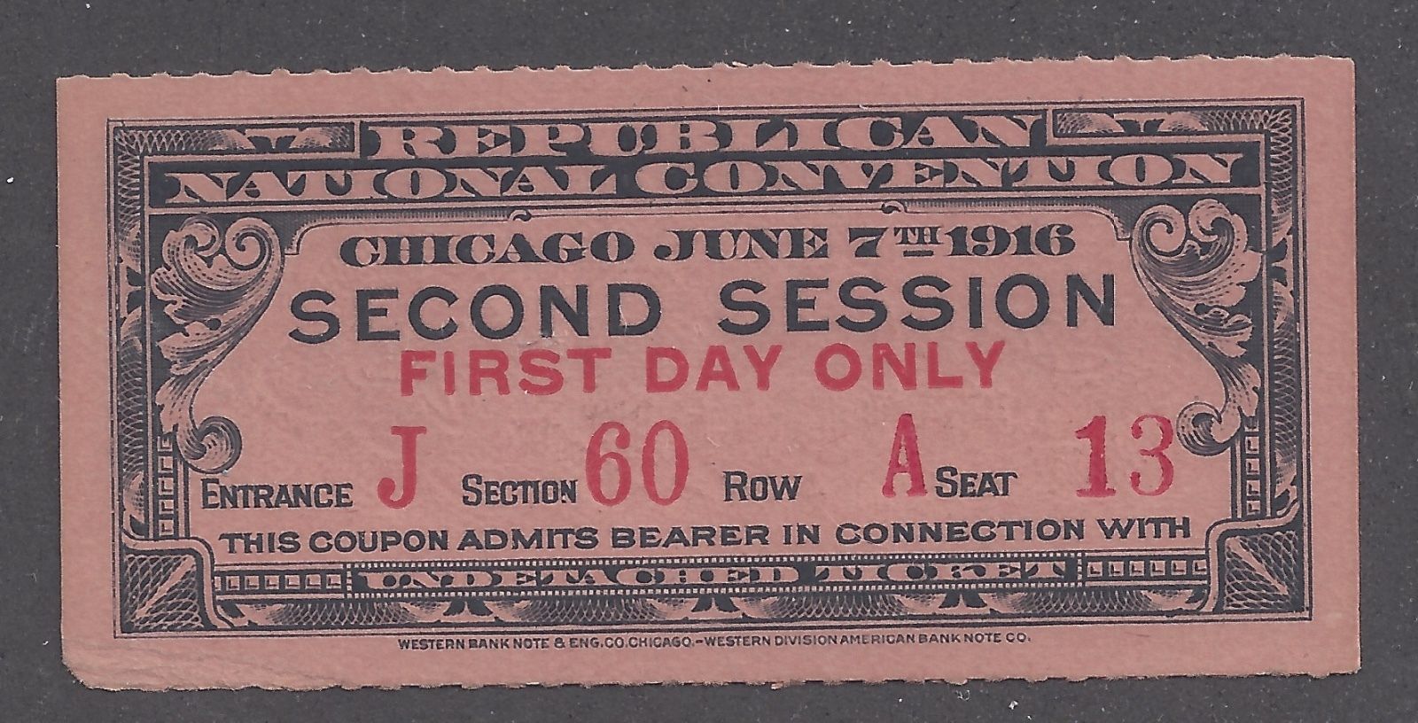 Title (ebay affiliate link): Republican National Convention 1916 Stub - detached - First day only