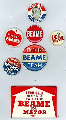 Title (ebay affiliate link): 6 Vintage 1970s New York City Mayor Beame Political Pinback Buttons &1 Mirror