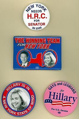 4 Vintage 2000 New York Senator Hillary Clinton Political Pinback Buttons HRC