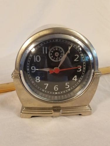 Title (ebay affiliate link): Pottery Barn Retro Style Alarm Clock Antique Silver Finish - Desk Or Table Top