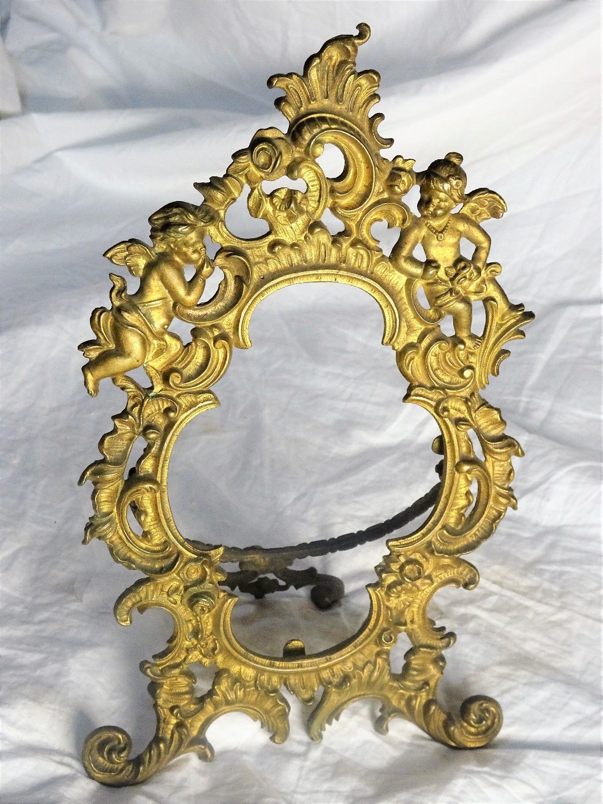 Title (ebay affiliate link): Vintage Antq Gold Gilt Gilt Brass Metal Prop Table Frame Mirror Picture Cherubs