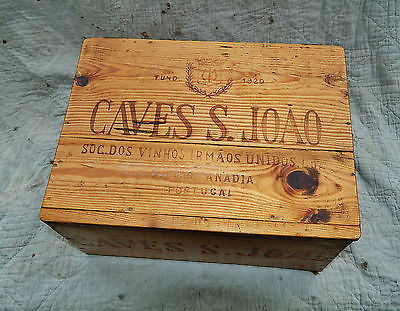 VINTAGE ADVERTISING WOODEN WINE BOX / 12 BOTTLE CRATE with LID * 1973 CAVES JOAO