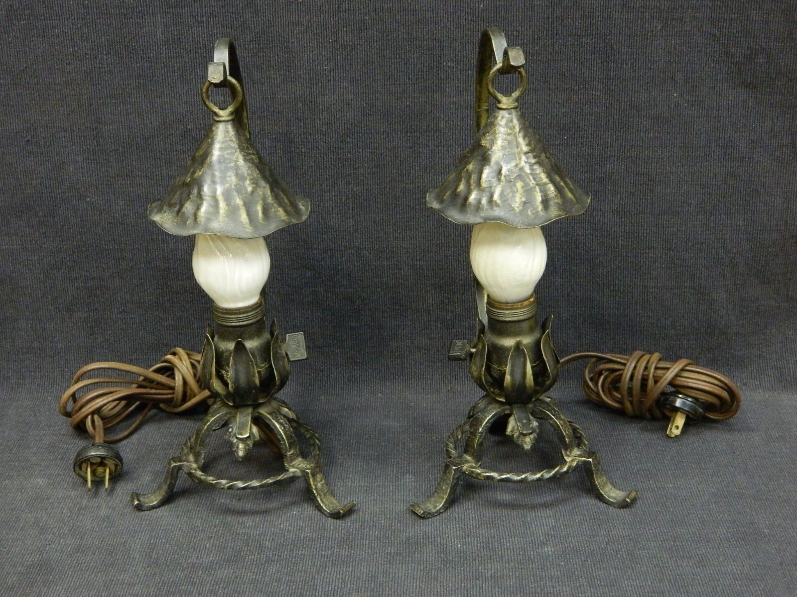 Title (ebay affiliate link): Hammered Pair Arts Crafts Mission Style Boudoir Lamps Original 11 Inch Gothic