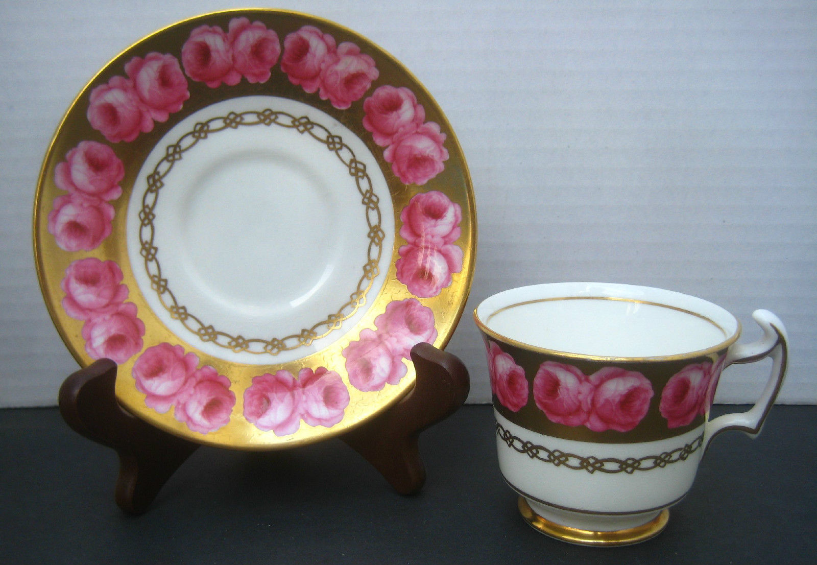 Tea Cup & Saucer Royal Chelsea Bone China Gold Cabbage Rose England