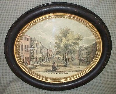 LARGE OVAL CIVIL WAR ERA PICTURE FRAME W/GREAT OLD PRINT OF FRANKLIN ST BOSTON