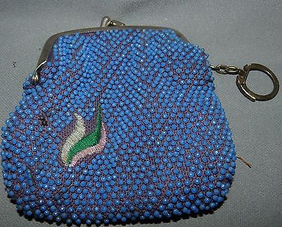 Title (ebay affiliate link): Blue Beaded Coin Purse with Key Chain Embroidered Flower Vintage