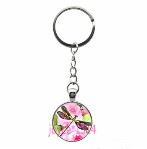 Vintage Dragonfly Cabochon Tibetan silver Glass Chain Pendant Key Ring #YQT-8