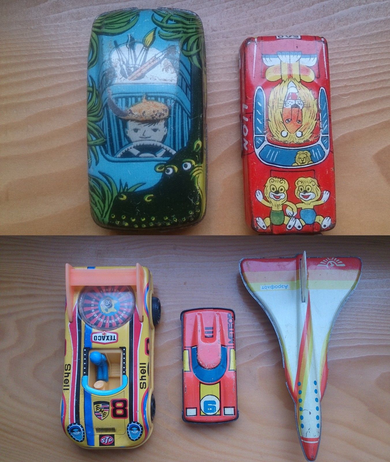 Lot of 5 small vintage tin plate toys - One is TN Nomura - Made in Japan