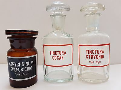 Title (ebay affiliate link): Set of 3 Vintage Brown/Clear Glass Apothecary Pharmacy Jars/Bottles x50, x100 ml