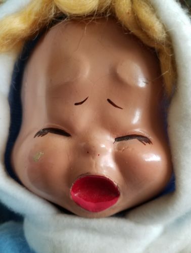 Title (ebay affiliate link): TRUDY Antique Composition ''SMILEY WEEPY SLEEPY'' Doll With Three Faces
