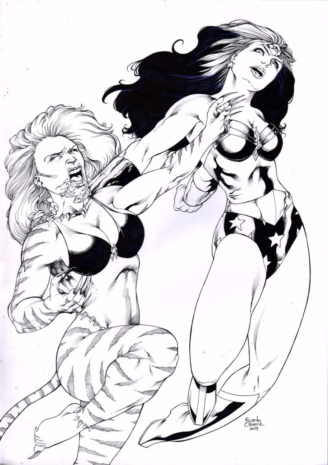 Princess Diana vs Tigra (11"x17") by Ricardo Oliveira - Ed Benes Studio