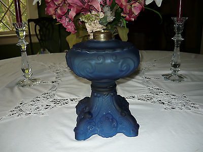ANTIQUE COBALT GLASS PRINCESS FEATHER OIL/KEROSENE LAMP BASE