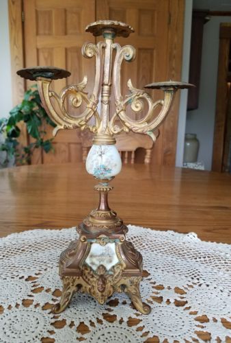 Title (ebay affiliate link): Antique Cast Metal French Rocco Bronze Tone Candelabra w/3 Candle Holders 12"T