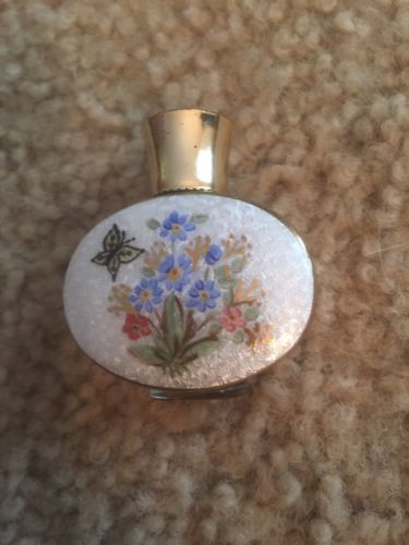 Title (ebay affiliate link): Antique Vintage Guilloche & Brass Perfume Bottle! Flowers & Butterflies
