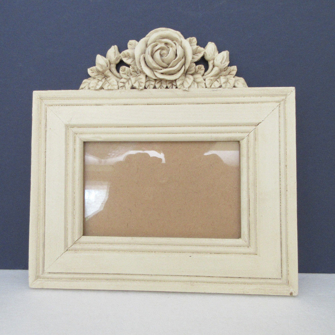 Antique Deeply Wood Carved Picture Frame Ivory Color