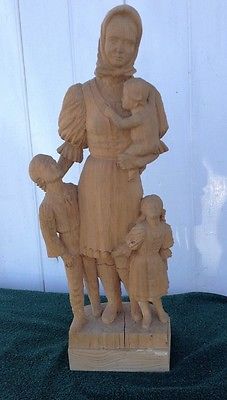 Title (ebay affiliate link): Vintage Primitive Hand Carved Wood Figurine of Mother & 3 Children 22 1/2" tall