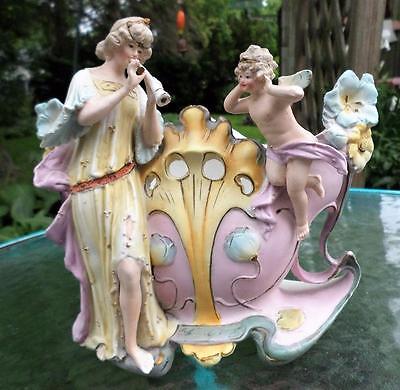 ANTIQUE GERMAN BISQUE FIGURINE ART NOUVEAU LADY & CHERUB DEP 7966 PORCELAIN
