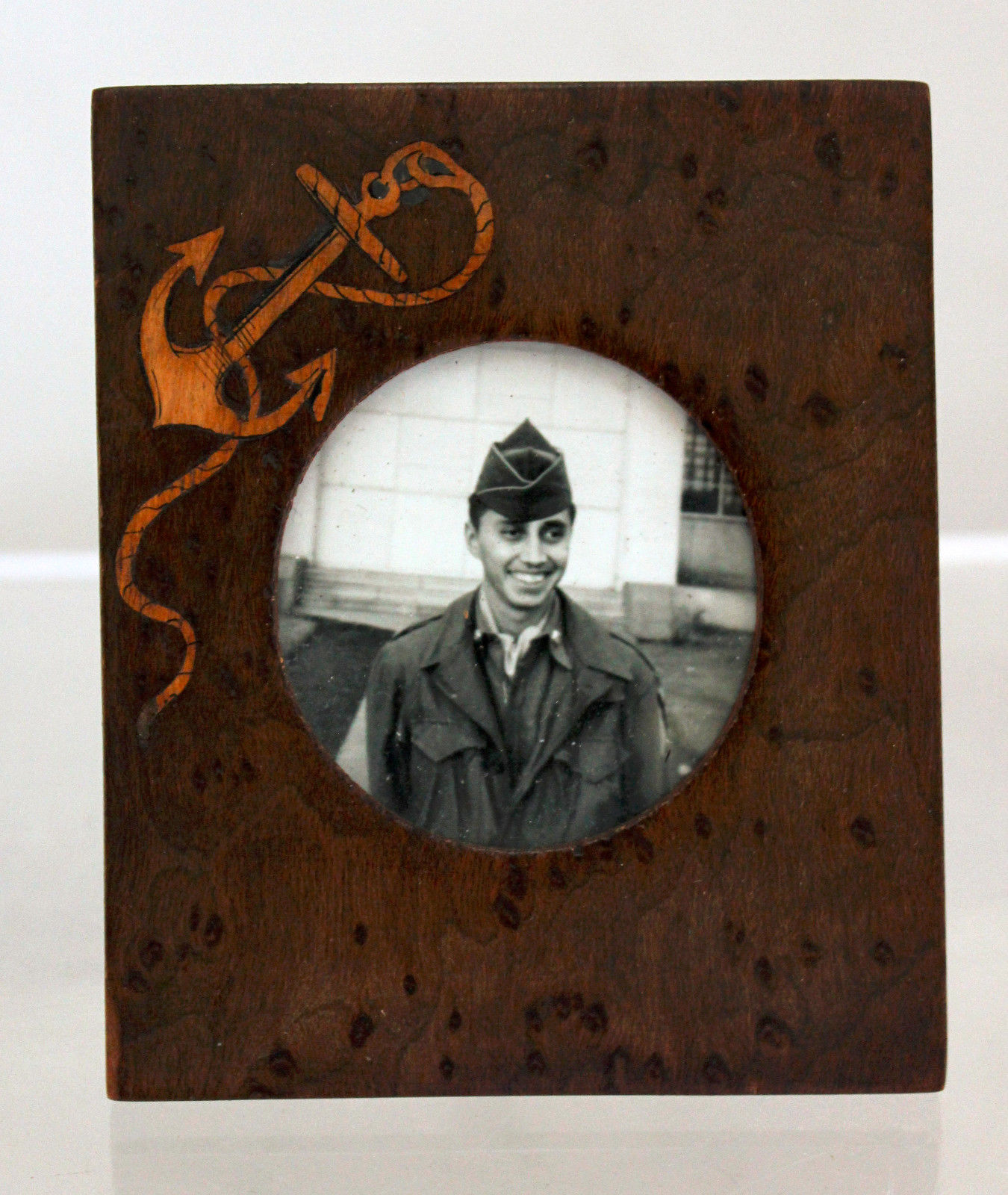 Title (ebay affiliate link): Vintage Wood Mahogany? Frame Inlaid Anchor Line Decoration WW II