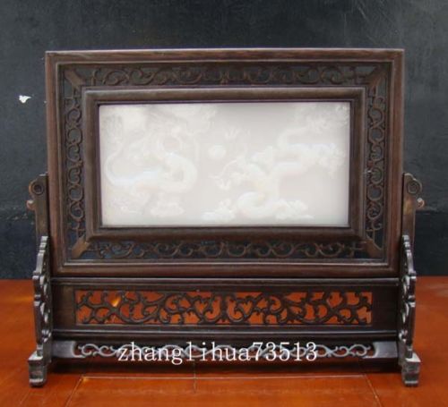 Title (ebay affiliate link): 16.2"X13.4" Antique Handmade Wood White Jade Inlaid Screen Two Dragon Deco Art