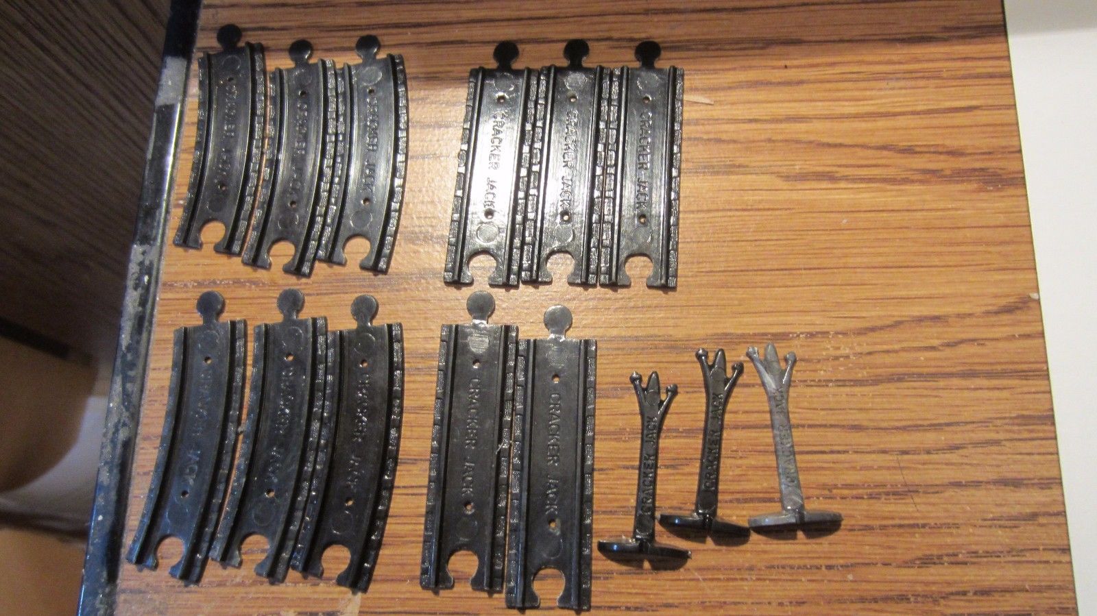 Title (ebay affiliate link): CRACKER JACK TRAIN TRACKS- CONSISTS OF 6 CURVED TRACK, 5 STRAIGHT TRACK, 3 TREES