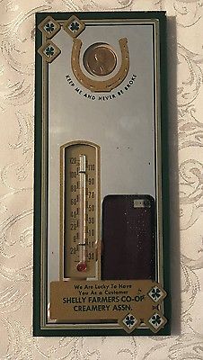 Title (ebay affiliate link): VINTAGE ADVERTISING THERMOMETER MIRROR SHELLY FARMERS CO-OP CREAMEREY