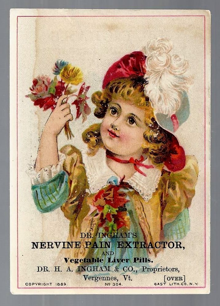 Dr. Ingham''s Nervine Pain Extractor 1889 medicine trade card #B - Vergennes, VT