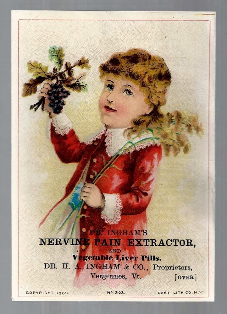 Dr. Ingham''s Nervine Pain Extractor 1889 medicine trade card #D - Vergennes, VT