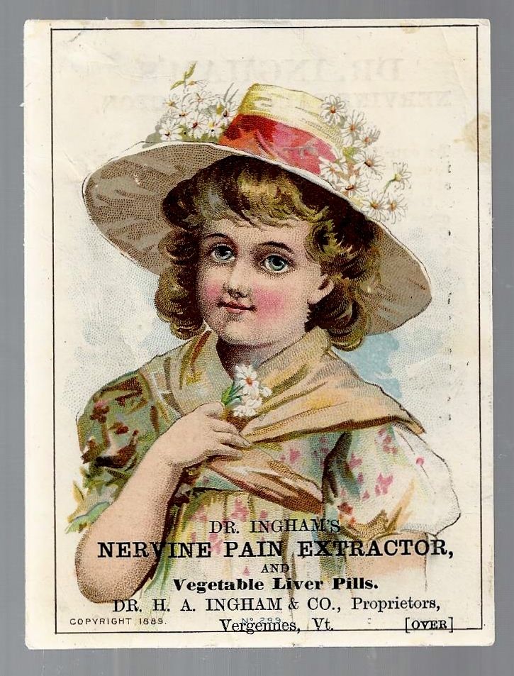 Dr. Ingham''s Nervine Pain Extractor 1889 medicine trade card #F - Vergennes, VT