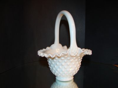 Fenton Milk Glass Hobnail Ruffled Basket! Nice!