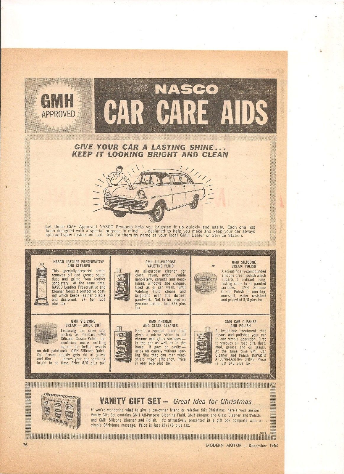 ORIGINAL VINTAGE 1963 EK HOLDEN NASCO CAR CARE AIDS AUSTRALIAN ADVERT