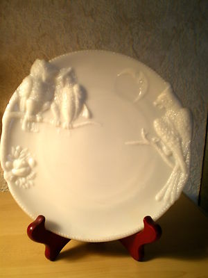COLLECTABLE MILK GLASS PLATE EMBOSSED WITH BIRDS
