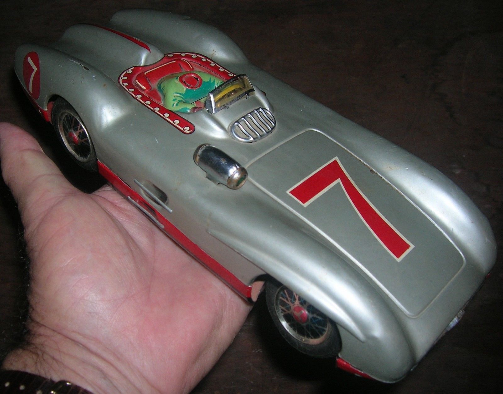 Title (ebay affiliate link): Vintage Tin Lithographed Marusan Mercedes Benz Battery Tin Racing Car Toy