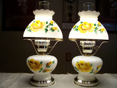 VTG PAIR MILK GLASS HURRICANE STYLE ELECTRIC LAMPS