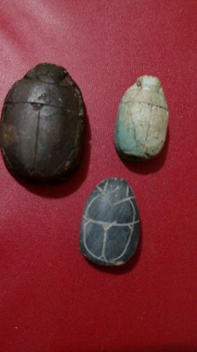 Title (ebay affiliate link): Lot of 3 Egyptian Beetle Scarab Amulets, Natural Carved Stone