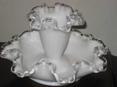LOF OF FENTON SILVER CREST MILK GLASS VASE AND BOWL